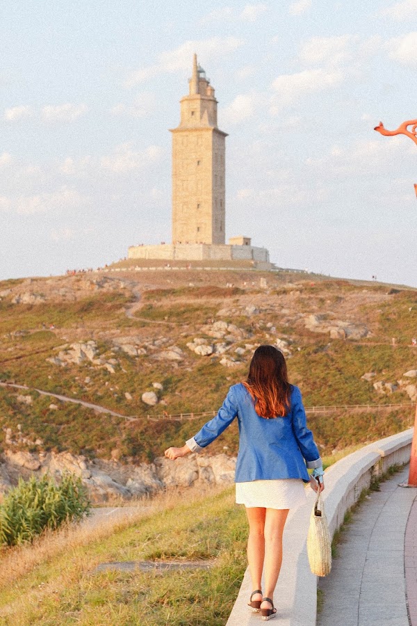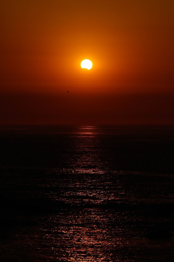 Cuando quisimos llegar a La Coruña (y aparcar...), el sol estaba a punto de ponerse y Manu se moría de ganas de ver la puesta de sol desde la Torre de Hércules. Había muchísima gente pasando apresuradamente por la zona que, incluso, se llevaban la cena en formato picnic. Fue entonces cuando nos dimos cuenta de la razón: ¡el eclipse! Y sí, lo vimos. Nos quedamos sentados frente al acantilado hasta que el sol se puso. Fue precioso.