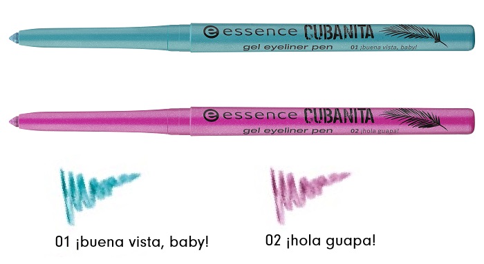 Eyeliner en gel formato rotulador de punta fina turquesa y rosa metálico, de gran cobertura para conseguir unos maquillajes de ojos resistentes al agua y de larga duración. Turquesa tono 01 ¡buena vista, baby! y rosa tono 02 ¡hola guapa! Precio 2,49 cada uno.