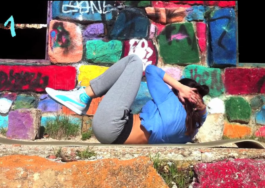 En tan solo tres pasos vamos a trabajar todo el abdomen. Comienza tumbada sobre una esterilla en el suelo, flexiona las rodillas y pon tus manos en el cuello. ¡Sencillo! Ahora, tu codo derecho tiene que tocar la rodilla izquierda y viceversa. Seguido, estiramos las piernas lo que podamos a la vez que apretamos el abdomen y realizamos dos abdominales.