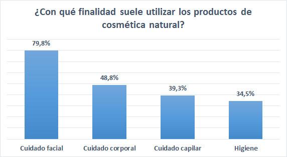 Por otro lado, casi un 80% de los compradores de cosmética natural utilizan estos productos para el cuidado facial. Los productos para el cuidado corporal ocupan la segunda posición entre los más utilizados (48,9%), seguidos del cuidado del cabello (39,3%) y la higiene personal (34,5%).