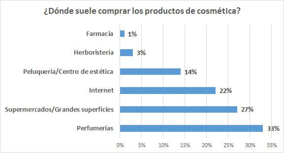 En cuanto a los lugares elegidos para comprar cosmética, el estudio de Espaciobio.com concluye que las perfumerías son el sitio preferido por los consumidores (57,3%) por delante de las Grandes Superficies/Supermercados (46,3%) e Internet (39%).