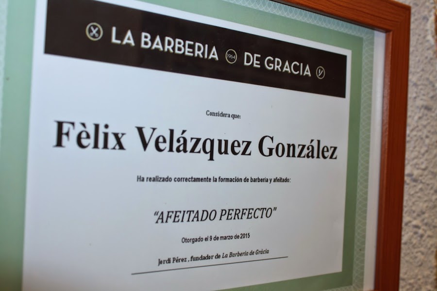 Félix Velázquez, se ha formado en la Barberia de Gràcia muy reconocida en su gremio con 3 estrellas Qhair la única barbería premiada con este galardón.