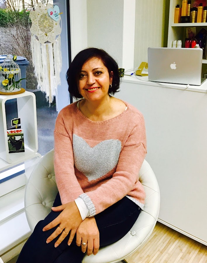 Esta modelo que aparece en la fotografía es Mila, una gallega que lleva muchos años viviendo en Suiza y hoy ha salido así de guapa de la peluquería.