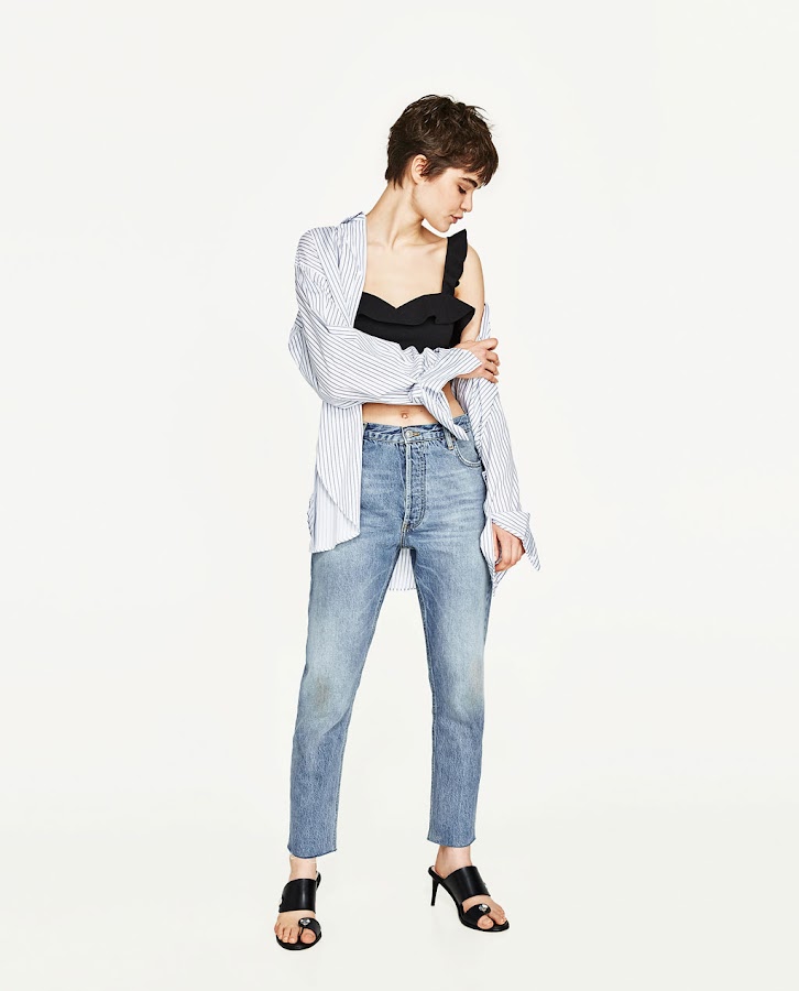 -Si eres más atrevida, en los días de calor puedes elegir uno con volantes y ponerlo solo combinado con unos jeans como hacen en Zara.