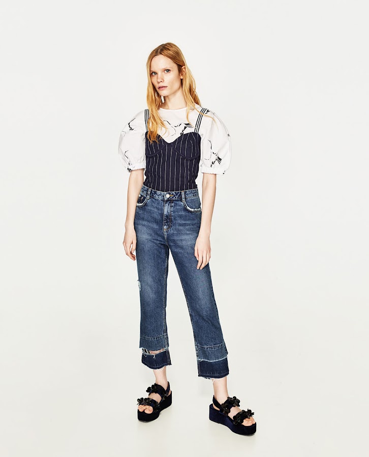- Combina estampados y pon tu top sobre tu camisa favorita, es cuestión de probar. Este ejemplo es de Zara.
