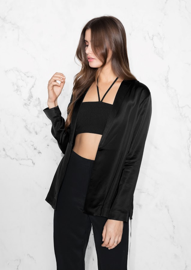 -Por último, puedes apostar por el total black como proponen en &Other Stories con este top anudado al cuello.