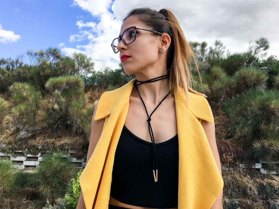 I have combined with a total look black to highlight more mustard color vest.