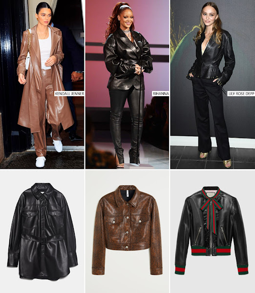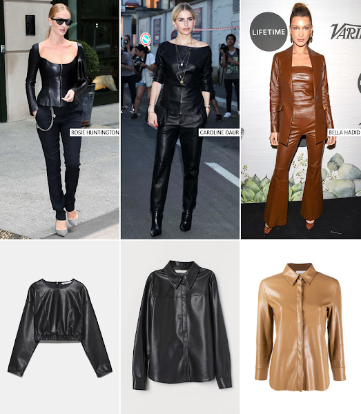 En orden: Blusas de cuero de Zara (22.95€) H&M (29.99€) y Nanushka (353.00€)