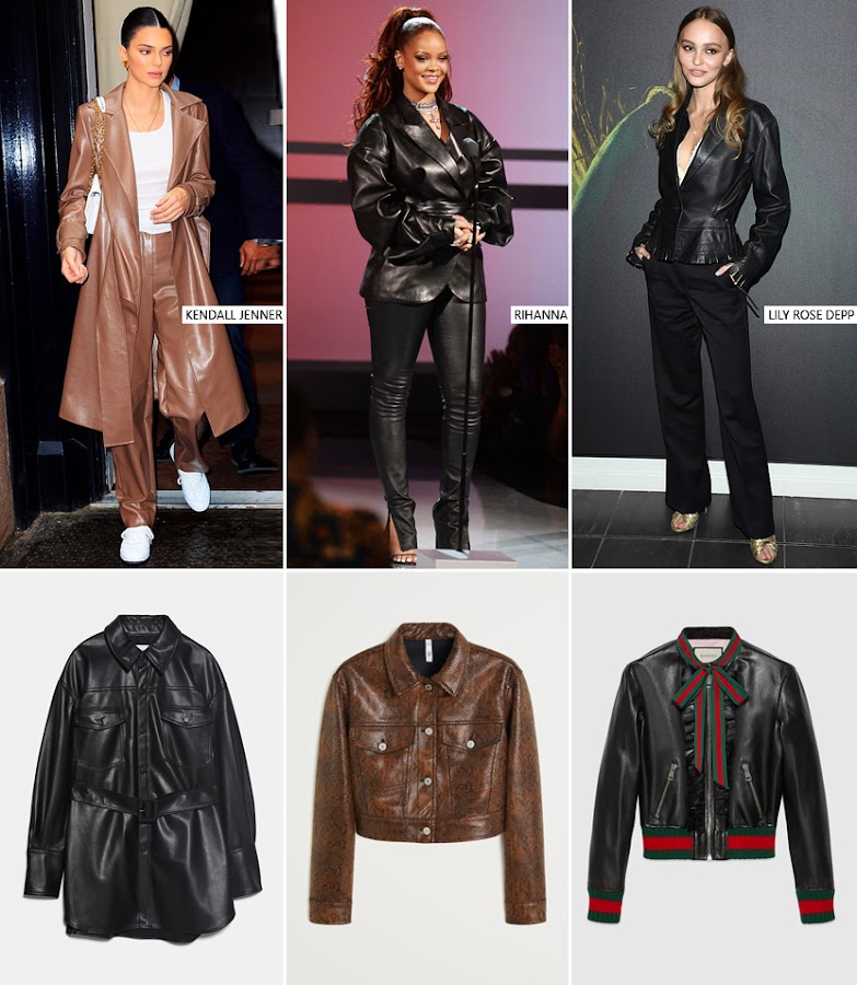 En orden: Chaquetas de cuero de Zara (39.95€) Mango (29.99€) y Gucci (2600.00€)