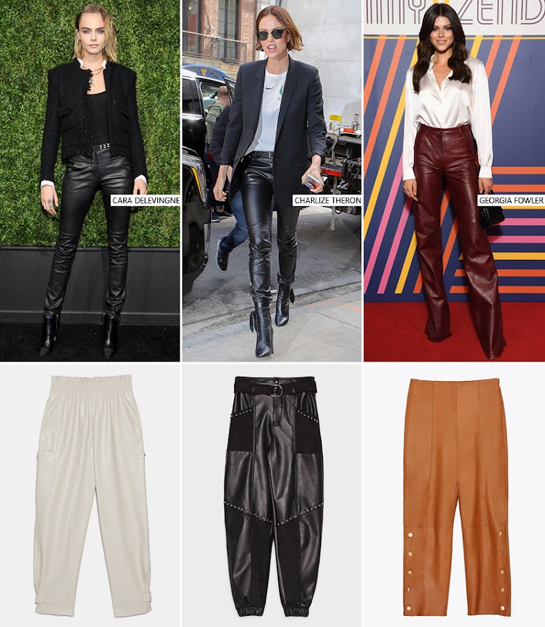 En orden: Pantalones de cuero de Zara (25.95€) Bershka (29.99€) y Uterqüe (229.00€)
