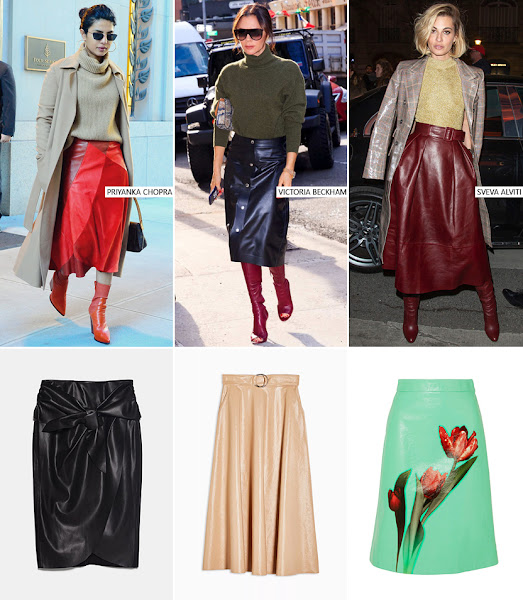 En orden: Faldas de cuero de Zara (25.95€) Topshop (68.00€) y Prada (2100.00€)