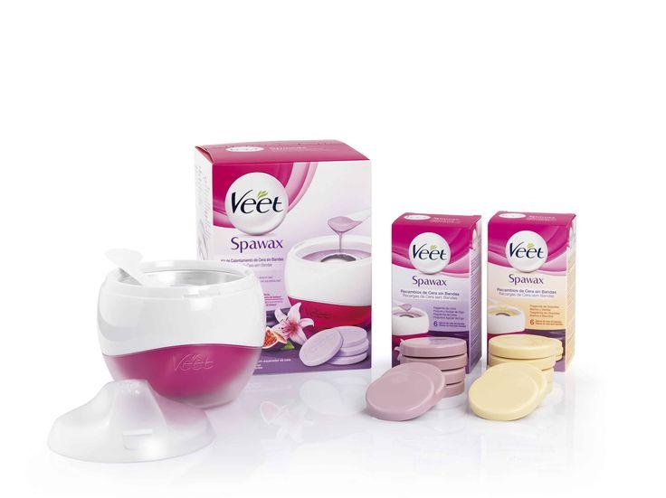 Kit Veet Spawax. Incluye: 1 dispositivo eléctrico + cable, 1 espátula y 6 discos de cera sin bandas (25 g cada uno), con Fragancia Lirios Púrpura y Azúcar de Higo. PVP: 34,99 €.