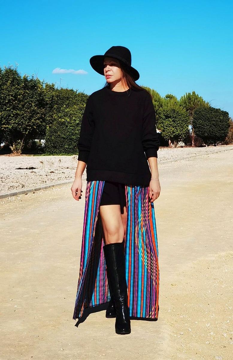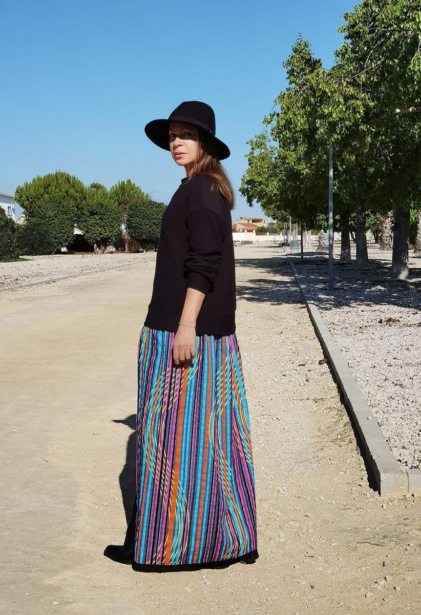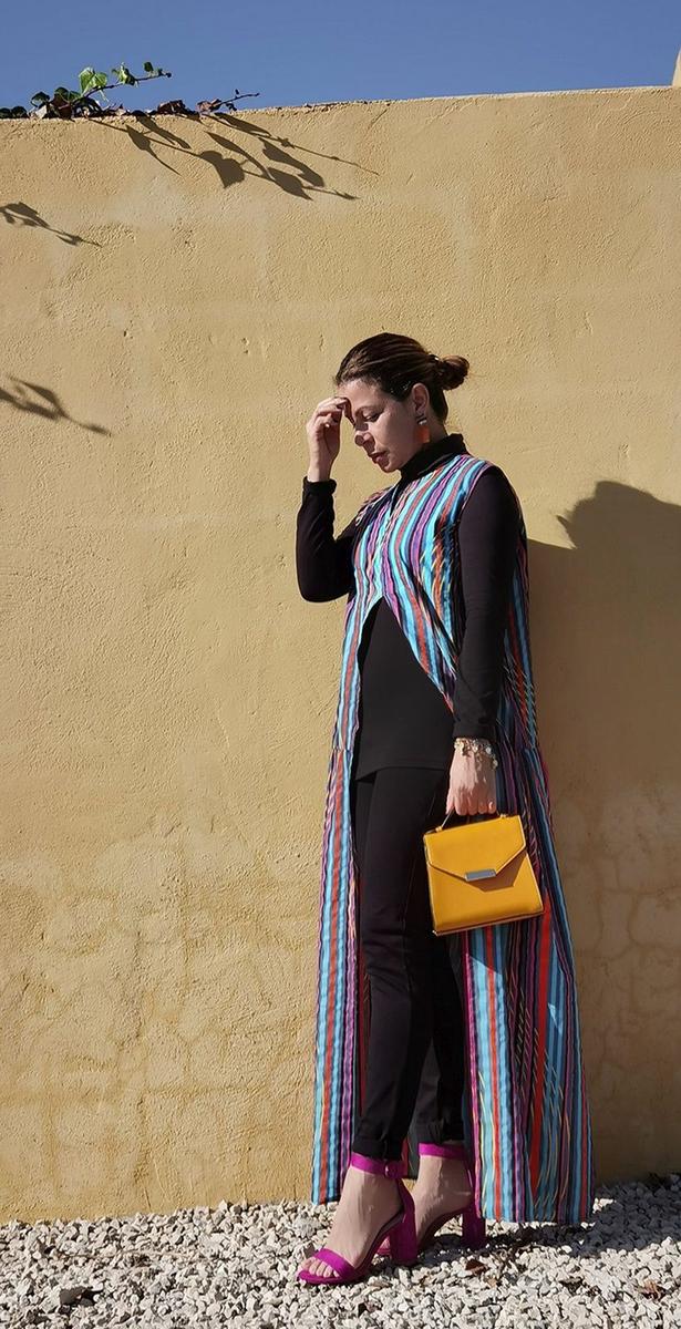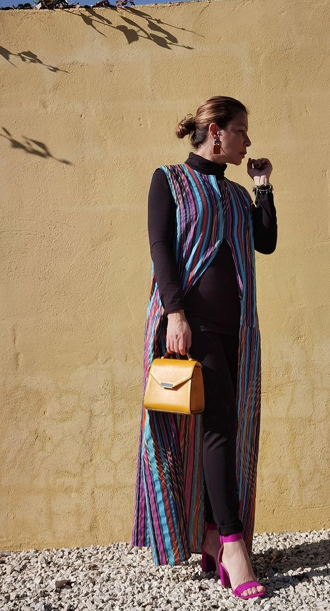 En este look, coloqué unos leggins con un jersey negros y los accesorios coloridos, que a pesar de ellos no exageran el look … y el look se transforma a uno más formal.