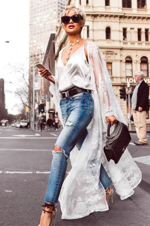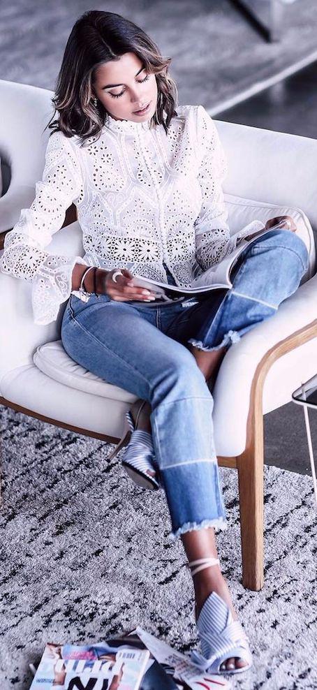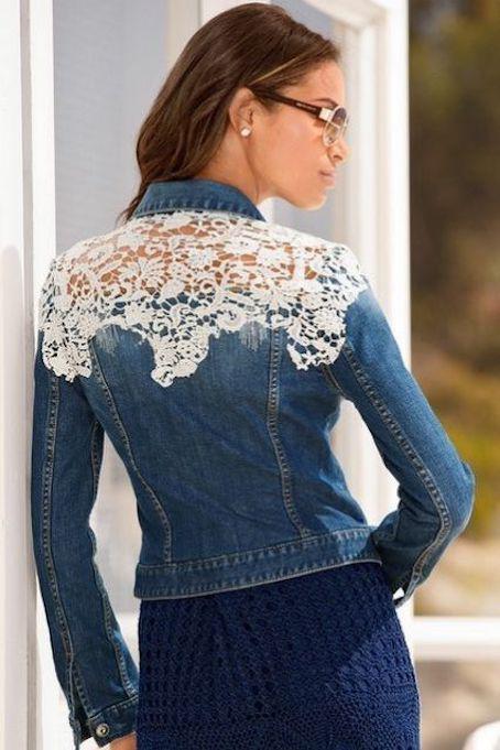 Los jeans combinan sumamente bien con el encaje; hacen un contraste muy interesante. Usa tus vaqueros o tus chaquetas de jeans con blusas o blusones hechos con este tejido y tendrás un look que todos tendrán que mirar.