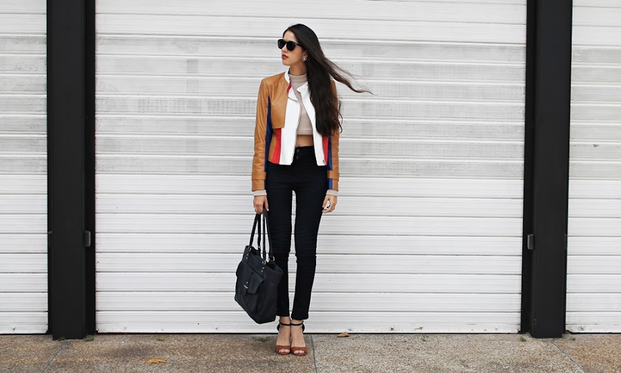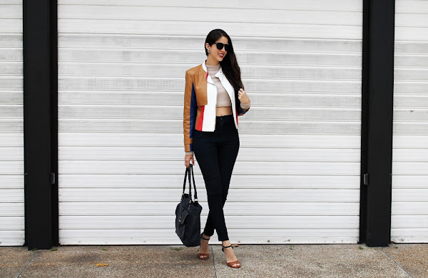 Es un look simple de armar pero lleno de estilo en los pequeños detalles, la prenda estrella sin duda alguna es está impresionante chaqueta con bloques de diferentes colores, pensé que sería un poco difícil de usar pero para nada, realmente resalta cualquier prenda (puedes comprarla aquí). Debajo de esta espectacular chaqueta use un crop top en cuello tortuga pero que trae una sorpresa... Un escote demasiado sexy, la espalda esta totalmente DESNUDA.