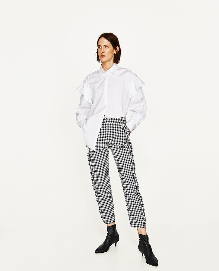 Si prefieres los pantalones, también puedes elegir estos de Zara con volantes, otra de las tendencias de la temporada.