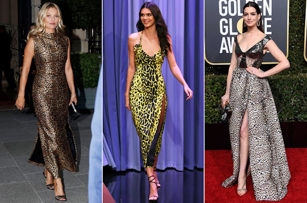 Kate Moss deslumbra con un diseño de leopardo con lentejuelas en la presentación de su último libro, Kendall Jenner añade color amarillo al estampado para acudir a una entrevista e incluso Anne Hathaway apuesta por el dibujo para acudir a los Globos de Oro de este año, con un diseño firmado por Valentino. Volantes, cortes asimétricos, con glitter, tipo túnica... El print más salvaje promete estampar tus próximas citas nocturnas.