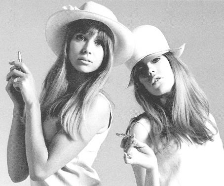 Otro look Hippie de la Pattie. Acompañada de Jill Kennington.