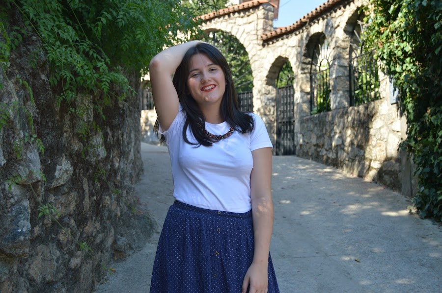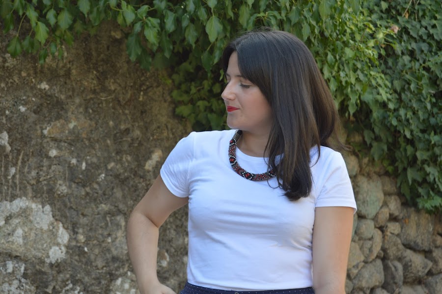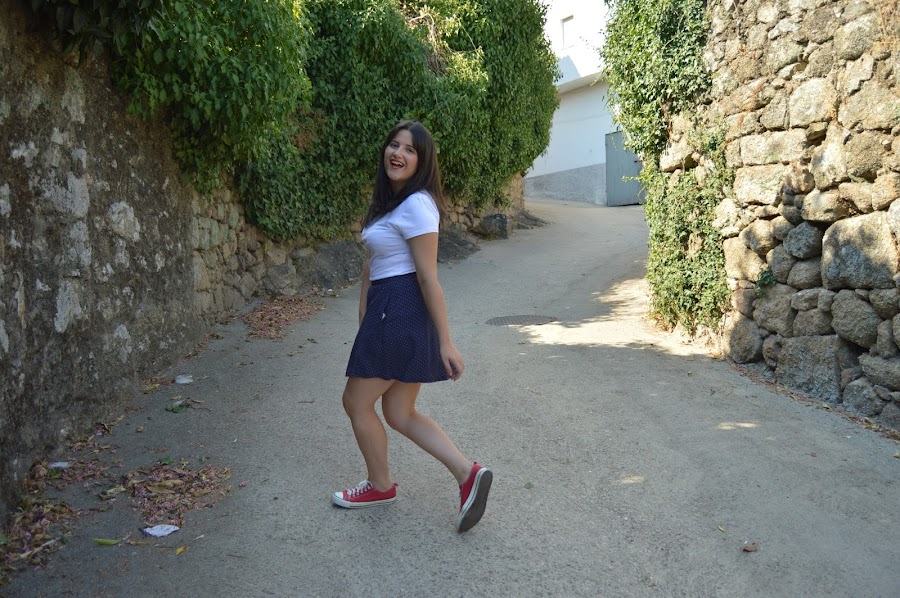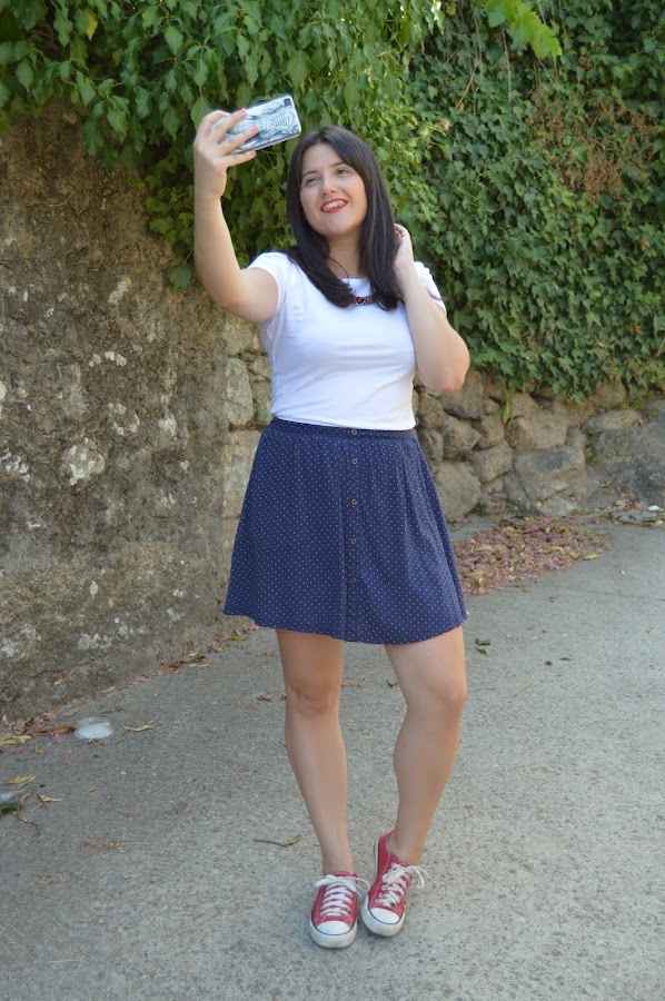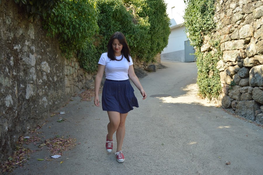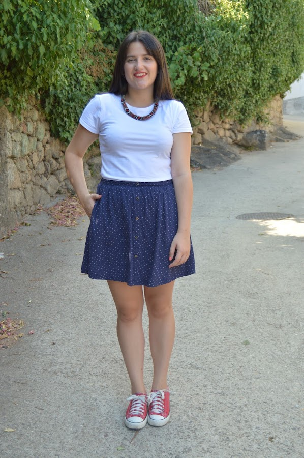 Si me seguís desde hace unos años, sabéis la obsesión que me dio con las medias de puntitos o plumeti. y lo mismo me ocurre con esta falda. Me encanta este tipo de estampado porque me parece muy sencillo pero que al combinado de manera sencilla destaca, como es en esta ocasión.