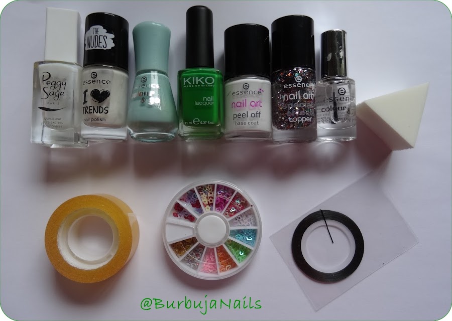 4. Ponemos dos trocitos de fixo formando un triángulo y las nail tapes las cruzamos como más nos guste.