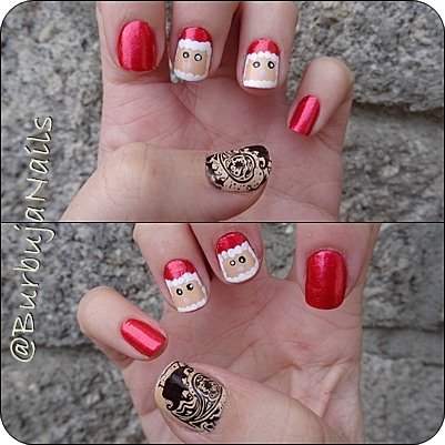 4. Ahora vamos a dibujar un papá Noel en las otras dos uñas que hemos esmaltado de beig: