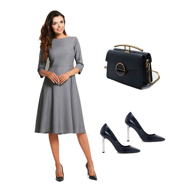 Vestidos en tonalidades grisacias son ideales para cualquier ocasión, funcionan bien para el uso diario como ropa de trabajo, para fiestas, o cenas familiares. El detalle más importante de enfatizar el carácter de la estilización son los zapatos. Para salidas formales propongo los tacones de aguja que harán la silueta más esbelta y añaden un acento más femenino. Sin embargo para un look urbano lo completaría con unas cómodas bailarinas o zapatillas deportivas.