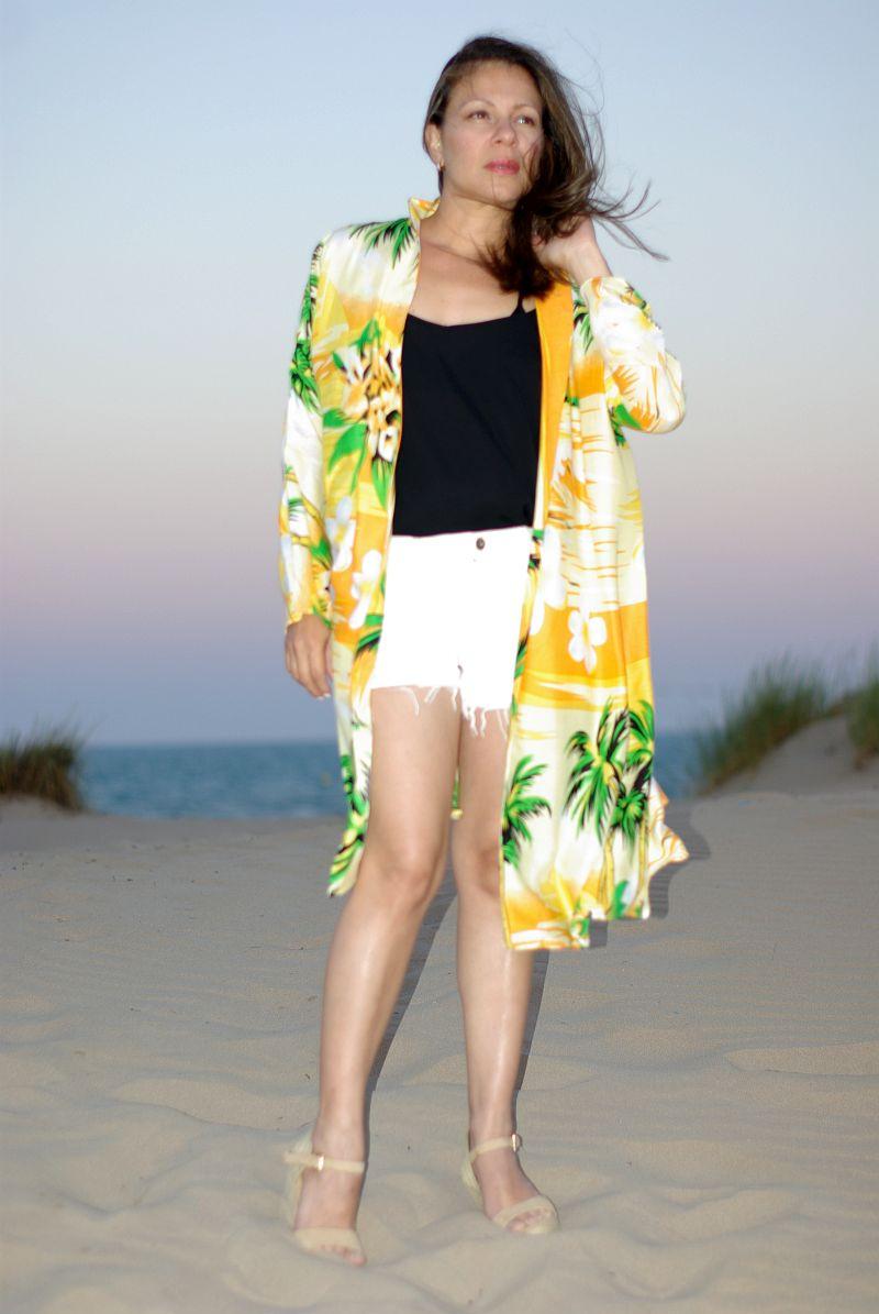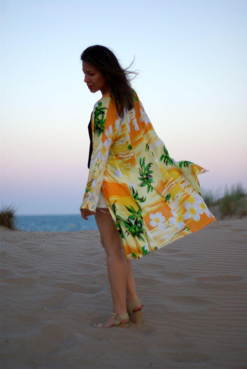 Hoy Vengo con un look muy veraniego… Un Kimono pero, con un estampado Hawaiano . Si, esta prenda con su tradicional print oriental y muy largo aunque también los hay cortos pero, no estoy cometiendo ningún sacrilegio fashion al hacerlo con este grabado porque ya los puedes encontrar en las tiendas con estos aires tropicales. Y el estampado Hawaiano es una de las tendencias que vienen para este Verano.