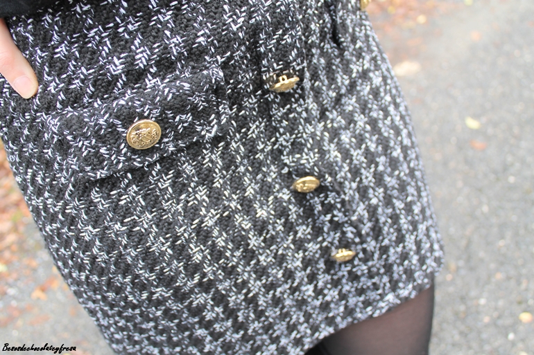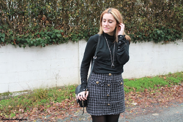 Pero de la prenda de la que hablamos hoy en el outfit es de la falda de tweed, sofisticación de nuevo y originalidad tanto para llevar a una reunión de trabajo o para el día a día con un toque de elegancia.