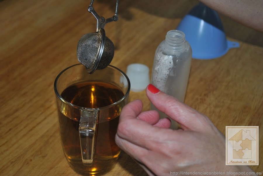 Cogemos el frasco donde lo vamos a envasar y llenamos con la infusión hasta la mitad.