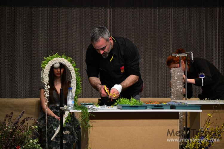 El espectáculo estuvo servido de la mano de di de Sant que nos deleitó con una impresionante actuación que combinó moda, danza y música en directo con arte floral en una atmósfera espectacular de luz, sonido, flores, formas y colores.