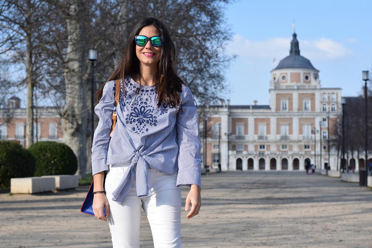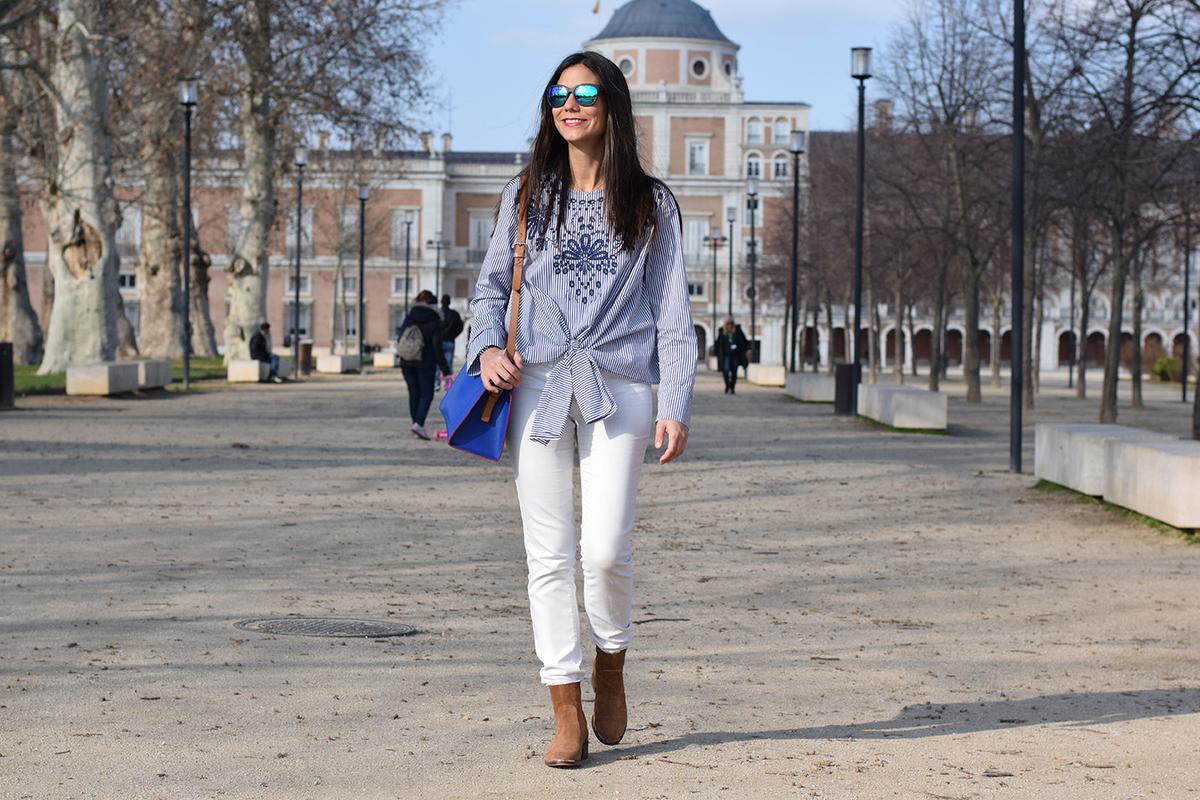 Aquí os dejo un look con unos botines de esdemarca. A pesar de ser de ante marrón los combiné con unos pantalones blancos. ¿Quién dijo no a los pantalones blancos en invierno? A mi, en días soleados, me parece que son muy alegres y elegantes. Así que este fue mi look de entretiempo para pasar un día en Aranjuez. A pesar de llevar 10 años en Madrid, es una ciudad que no conocía y que merece la pena visitar y pasar allí un domingo. Una visita al palacio y a sus jardines y un buen tapeo son un planazo.