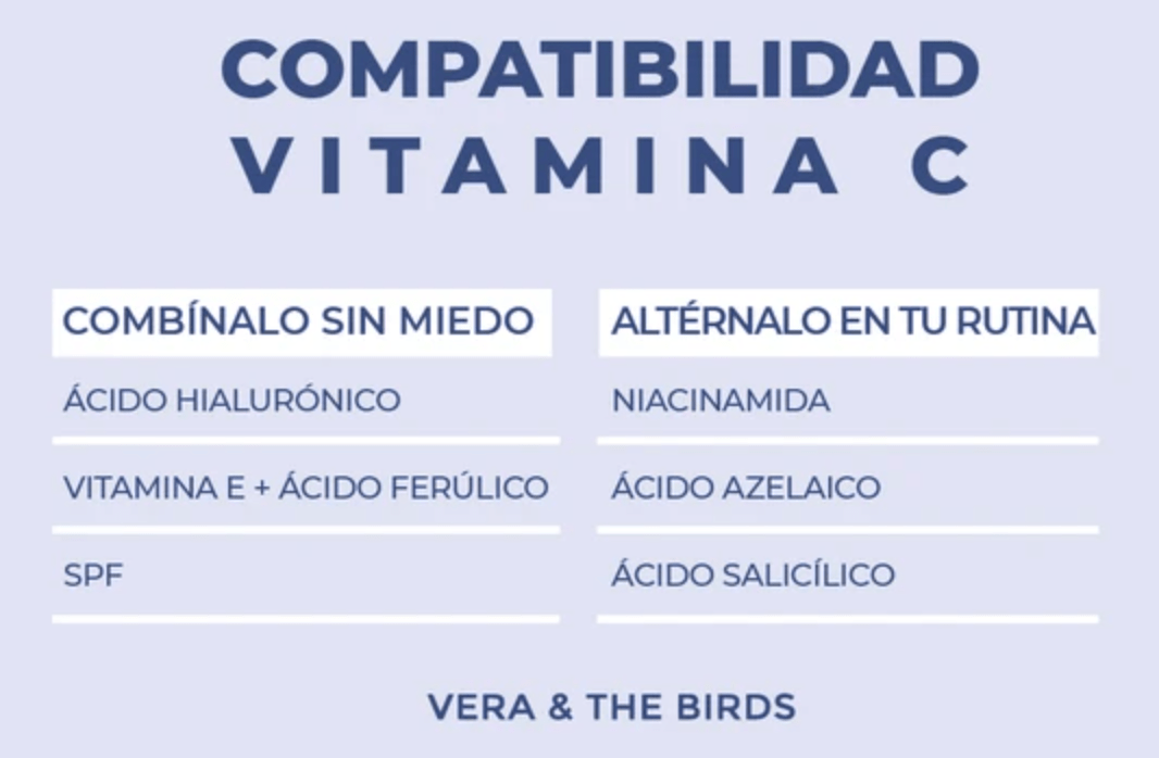 Vitamina C pura: El ácido ascórbico es la vitamina C en su forma pura. Es la vitamina más eficaz para despigmentar las manchas y unificar el tono.