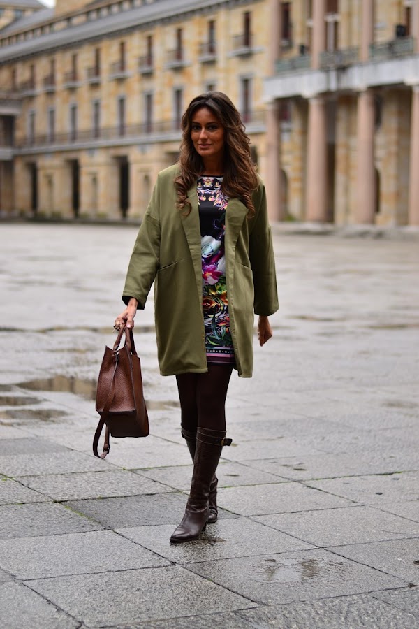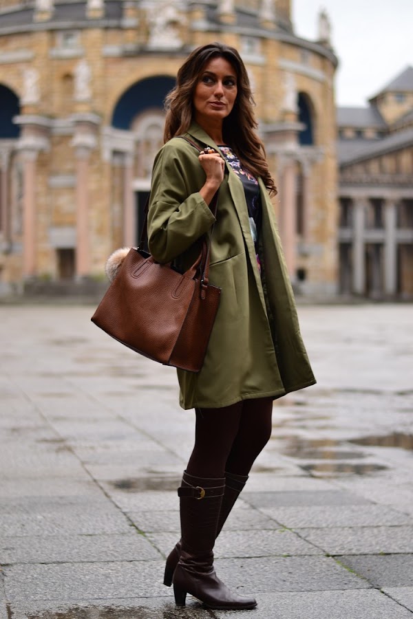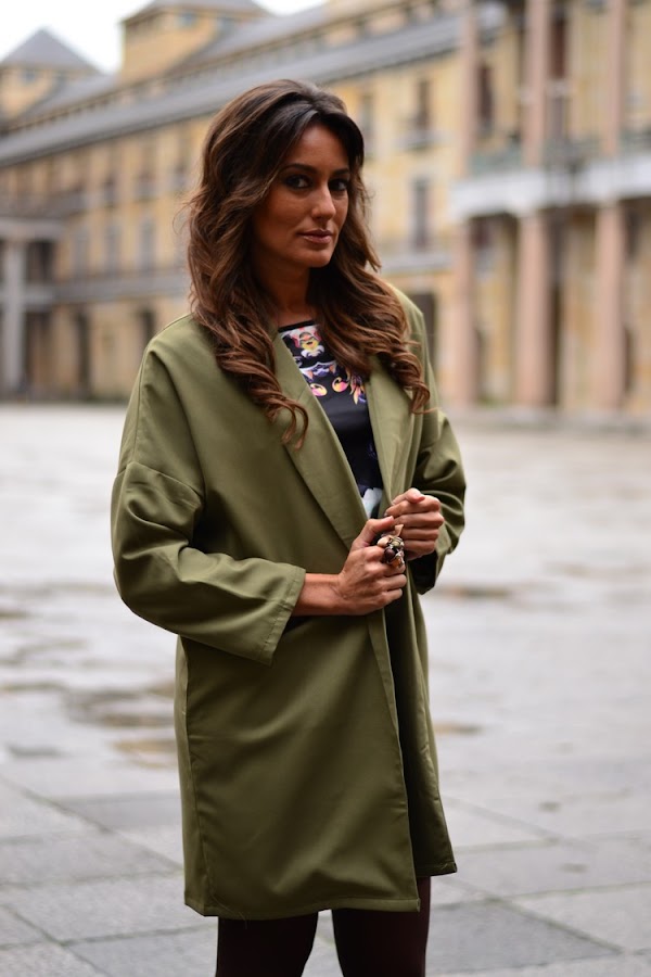 Hoy llevo un total look de Romwe, compuesto por un vestido entallado, de manga francesa y cuello redondo, con print floral, que he combinado con una gabardina holgada, de aire masculino, en color verde militar, súper cómoda y ultraligera, perfecta para el entretiempo, aprovechando las elevadas temperaturas que hemos tenido en los últimos días que me parece ideal para llevar, por ejemplo, sobre los hombros, cuando refresca y/o en días lluviosos.