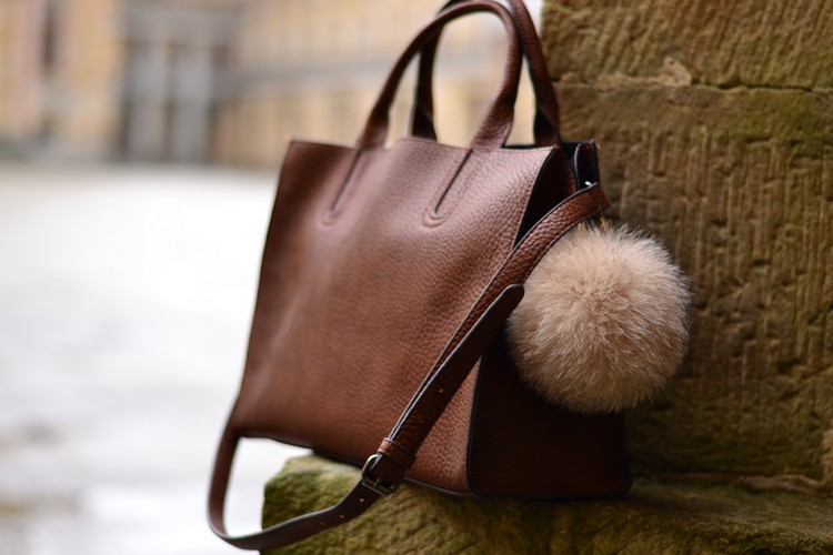 Y ya, para añadirle un "plus" en forma de accesorio extra, este precioso pompón de pelo, que, según me han dicho mis amigos de Italia Piel, es pura tendencia.