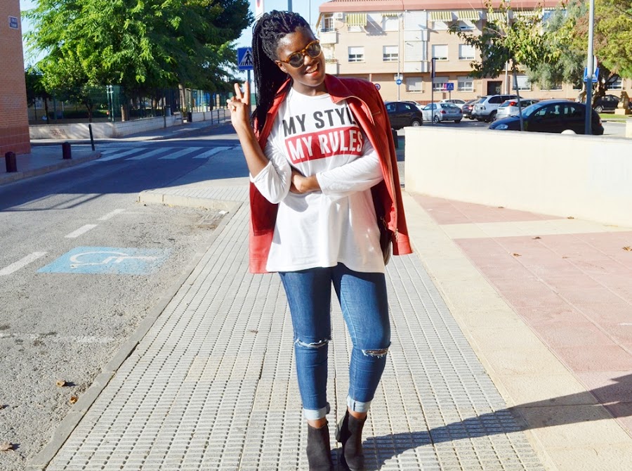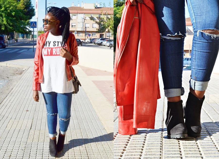 Hoy os dejo un outfit bastante básico,o al menos así lo creo yo. Unos jeans rotos (me los hice yo, estaba apunto de dejar estos vaqueros en el olvido), una de las camisetas de manga larga que más me gusta, chupa roja y estos preciosos botines de MaryPaz.