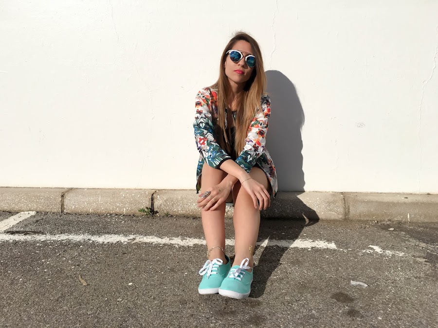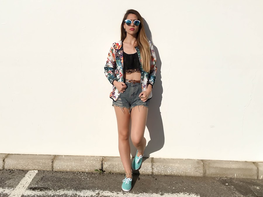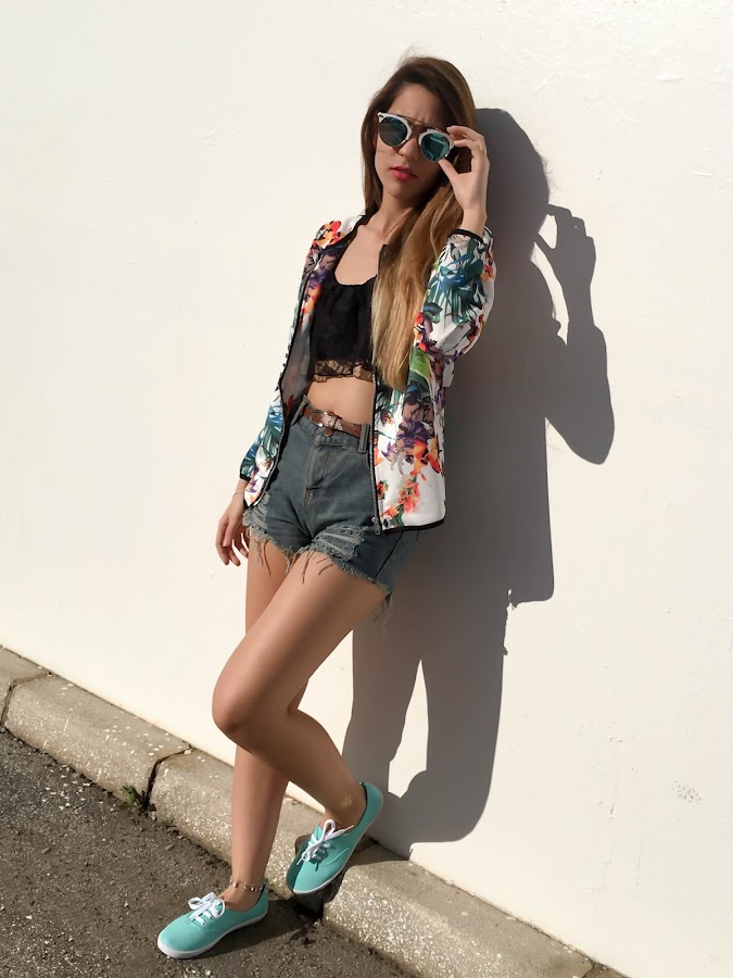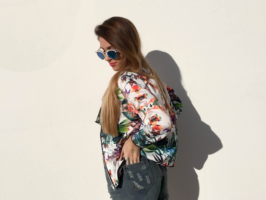 Y vamos al look de DRESSLINK que os enseño hoy, muy alegre y por supuesto, muy veraniego con unos shorts vaqueros rotos y deshilachados, de talle alto y súper cómodos, que no pueden faltar en el armario (en el mío, os aseguro que no faltan!!). Los he combinado con una bomber con un estampado muy tropical que da mucho color y alegría al look!