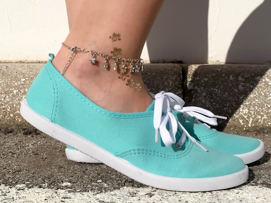 Además, he elegido un crop top negro de encaje de MILANOO y unas zapatillas color verde menta. Y por supuesto, llevo mis flash tatoos dorados de SIOOU, que tanto vimos el verano pasado y que este año van a seguir siendo protagonistas de los looks más veraniegos y playeros!!