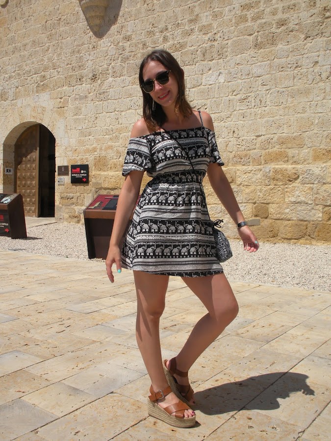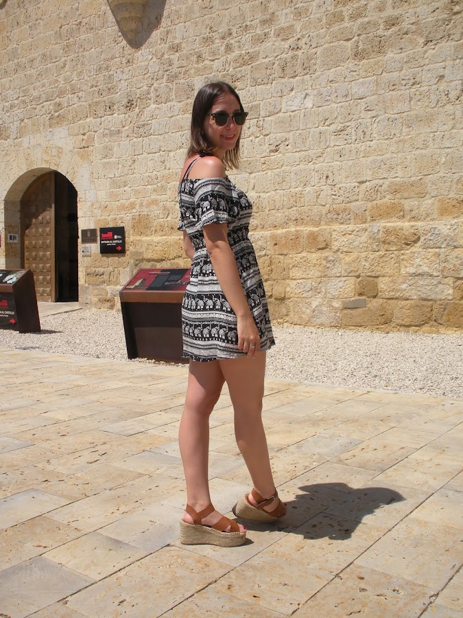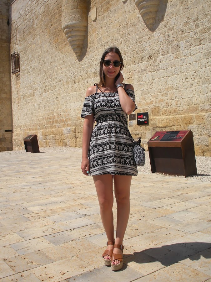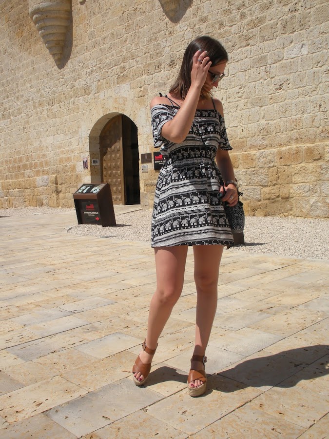 Y después de esto vamos con el look. Este vestido es igual que otro que os enseñé aquí pero con diferente estampado. Tiene un corte que me encanta súper en tendencia y como el vestido habla por sí solo poco más había que añadirle: bolsito bombonera en los mismos tonos y cuñas en camel para romper un poco con las tonalidades.