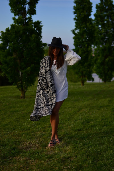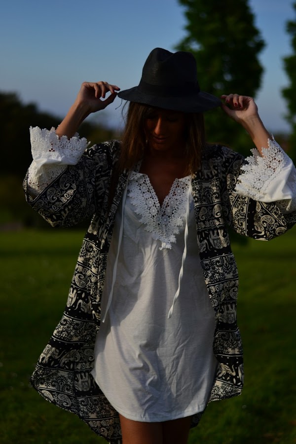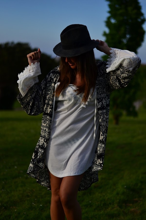 Con las miras ya puestas en las vacaciones de verano (por cierto, este año me voy a Menorca), se me ocurren un montón de looks, como éste, de Romwe, con vestidito playero blanco y Kimono encima para cuando refresque al caer la tarde.