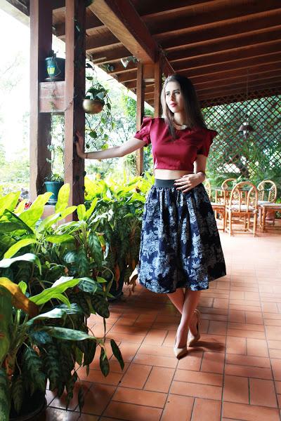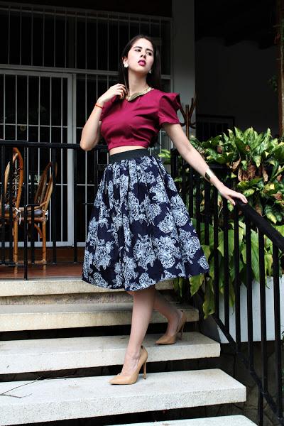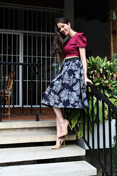Ahora hablando un poco del look de hoy; es bastante elegante para empezar la semana con buen pie. A mi me encantan las faldas midi, siento que lucen bien con todo y le dan la elegancia y el toque clásico a cualquier outfit, esta es de mi diseñadora favorita Titty Rincón, decidí combinarla con un crop top color vino de ABColecciones para darle un contraste de colores, unos accesorios espectaculares en color dorado y tacones nude (mis favoritos) para mantener el equilibrio de todo.