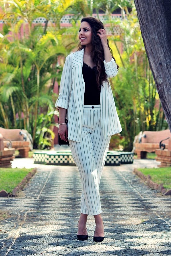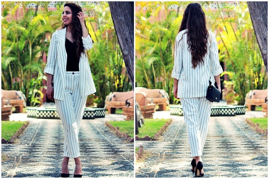 Hola cositas bonitas! Adoro los trajes para chicas, son super elegantes y no está de más tener uno en el armario por si surge alguna ocasión importante. Este es de Bershka y es super bonito! Además puedo conseguir varios looks con cada prenda, ya os lo iré enseñando El pantalón no se transparenta, es fluido, la tela es fresquita, perfecta para este tiempo y las líneas, al ser en vertical, dan la sensación de que somos más altas... ¿Se puede pedir más en un pantalón? La chaqueta es muy cómoda, dudaba si coger la XS o la S por si me quedaba muy justa o muy grande...y alfinal me cogí la XS, me queda genial ¡menos mal! La combiné con la camiseta de tirantes de encaje de Pull and Bear que os enseño en esta entrada. Bolso de Zara y tacones de Mango. ¿Qué os parece el look? Os dejo todos los enlaces debajo de las fotos :) Os deseo una buena semana! #FelizLunes.