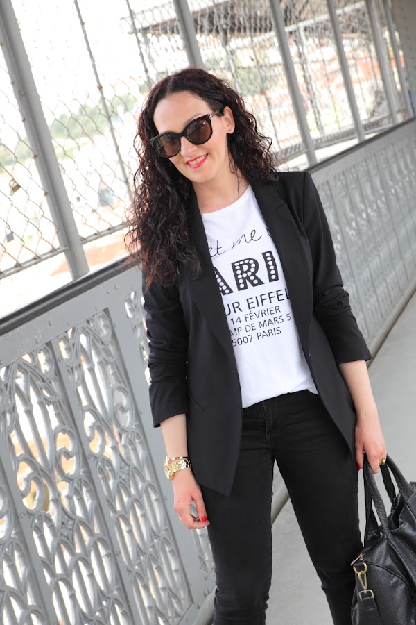 Blazer: Zara. Camiseta/T-Shirt: A Bicyclette. Jeans: Zara.
