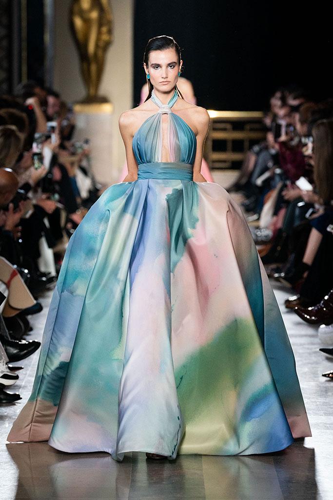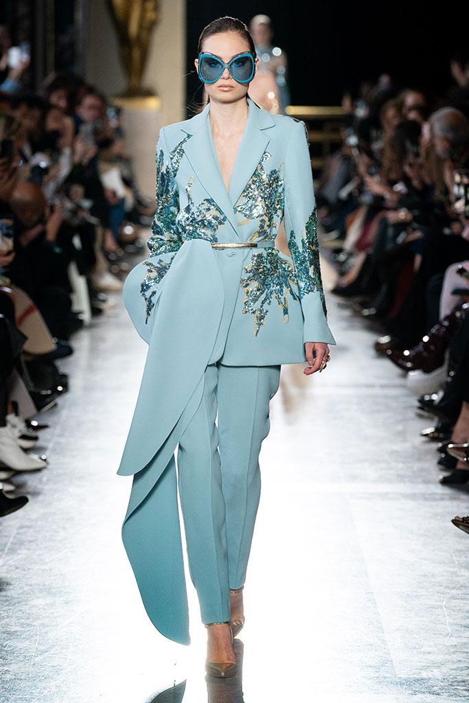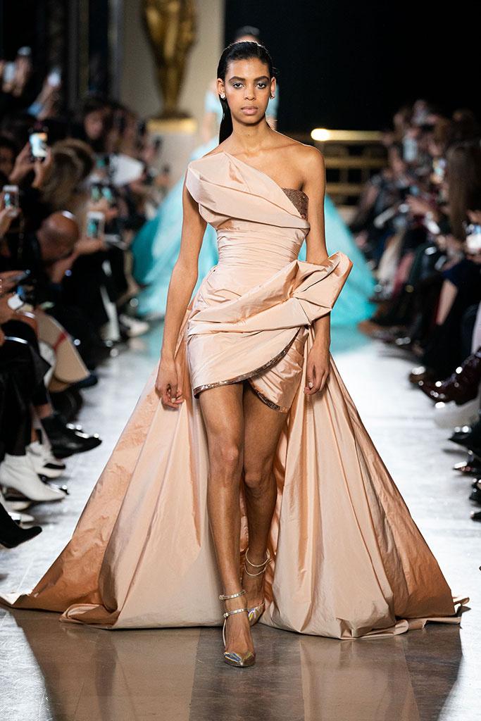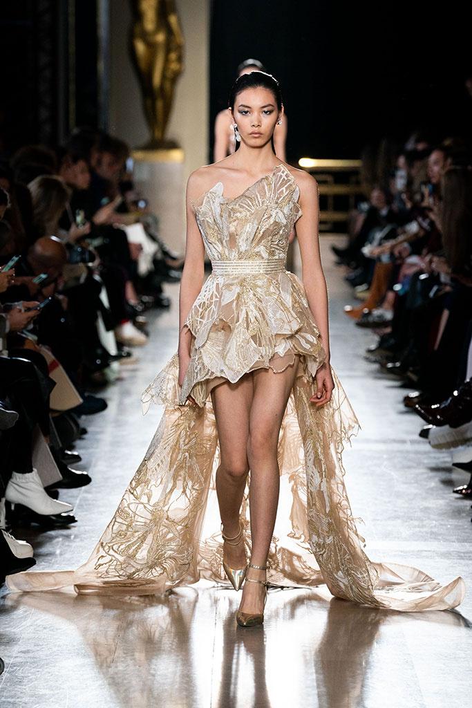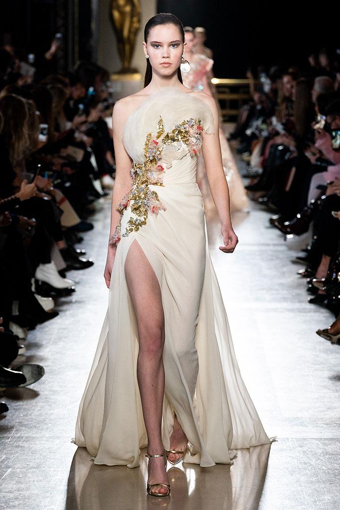 Pedrería, tul y transparencias fueron las notas características del desfile. Un desfile en el que no faltaron tonos metalizados y por supuesto tampoco los brillos ni las lentejuelas.