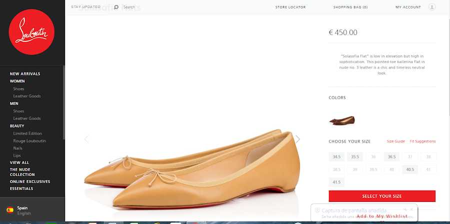 Como novedad en esta colección, además de sus clásicos stilettos en nude, el diseñador introduce las bailarinas "Solasofía" inspirada en las bailarinas de ballet y con 7 tonalidades para que cada una la elija según su tono de piel, y ¡cómo no! las bailarinas que están terminadas en punta, tienen la suela roja símbolo de la casa y se llaman (Matilda, Lea Nue, Nats, Maya, Safki, Ada y Toudou)