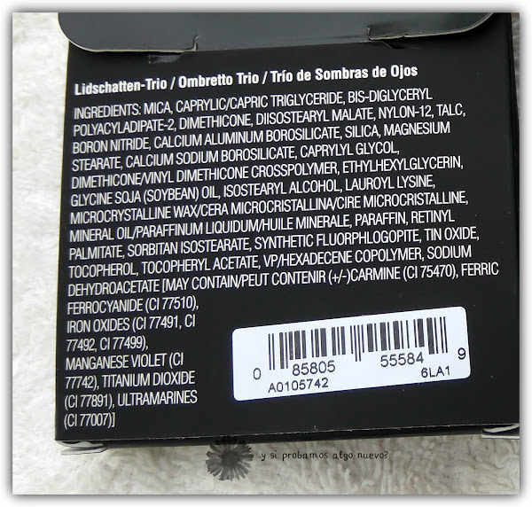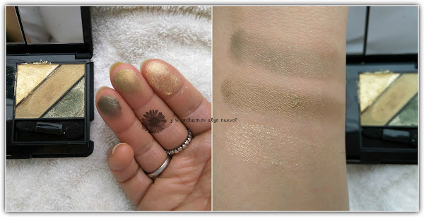 Estos son los dos tríos de sombras ya metidos en el estuche. Se pueden sacar y meter otro recambio, aunque por la forma que tiene sólo se pueden meter los de la marca. Uno venía en tonos verdes y el otro en tonos más neutros.