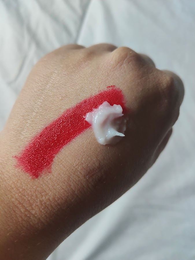 Elimina hasta el maquillaje de larga duración y los labiales rojos líquidos los funde en un plis.