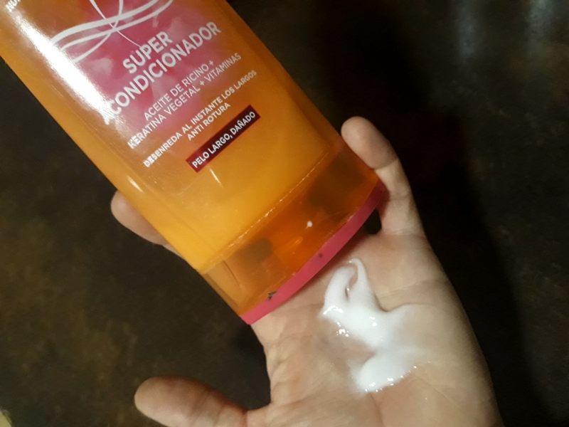 El champú es cremoso, suave y con color blanco con destellos, como si tuviera purpurina, tiene el olor típico de la marca. Las indicaciones dicen que se aclare con agua fría para aportar aún más brillo. El "superacondicionador" promete que evitará roturas y facilitará el desenredado, con textura cremosa de color blanca, muy suave de aplicar, un olor muy dulce y agradable.