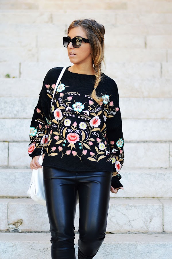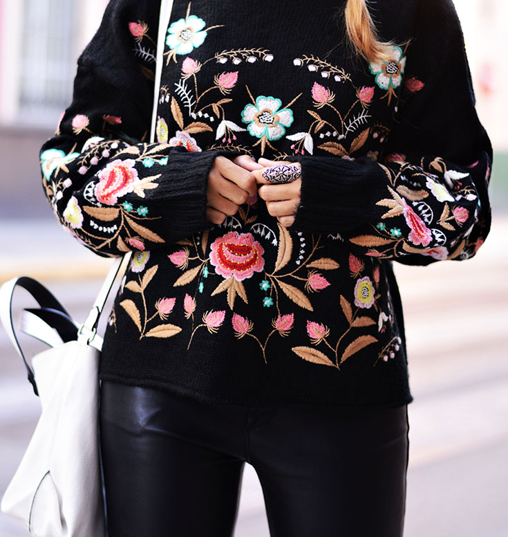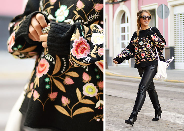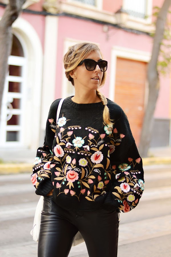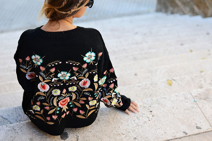 Embroidered sweater: Zaful / Pants, Booties & Bag: Zara