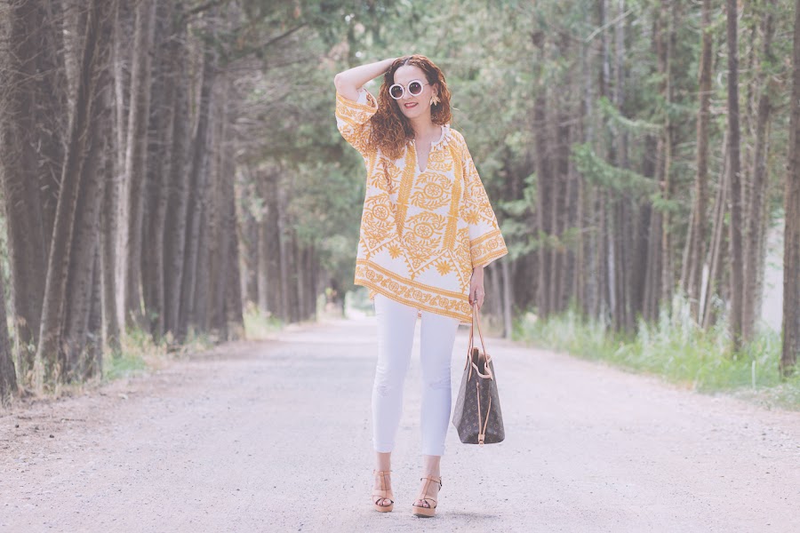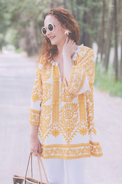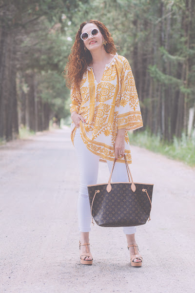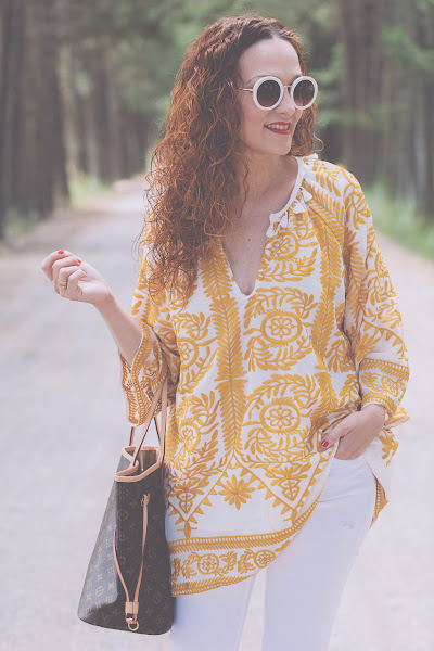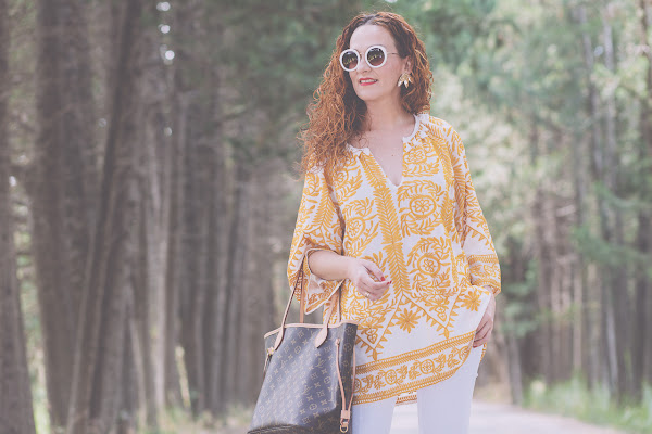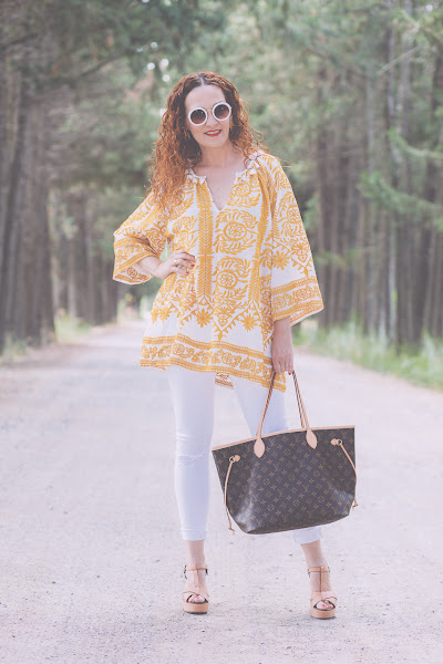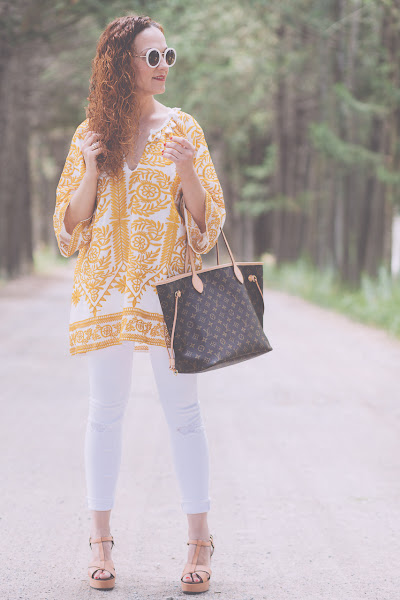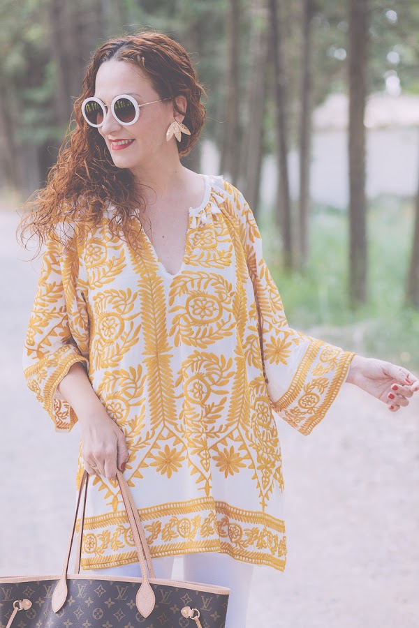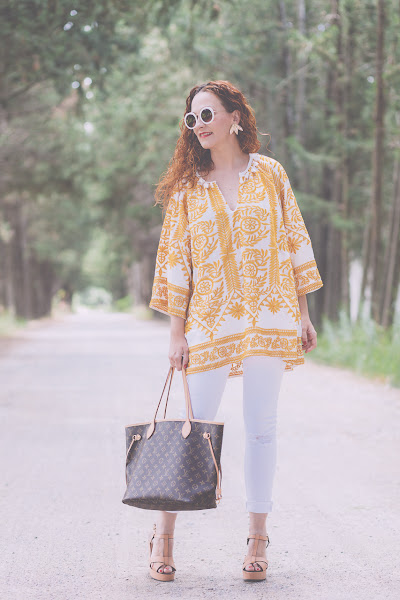 Blusón/Kaftan: Shein . Jeans: Zara. Pendientes/Earrings:Parfois. Zapatos/Shoes: Stradivarius. Bolso/Bag: Louis Vuitton.