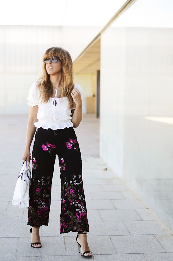Shirt: Shein / Embroidered pants: Sfera / Heels: Stradivarius / Bag: Zara